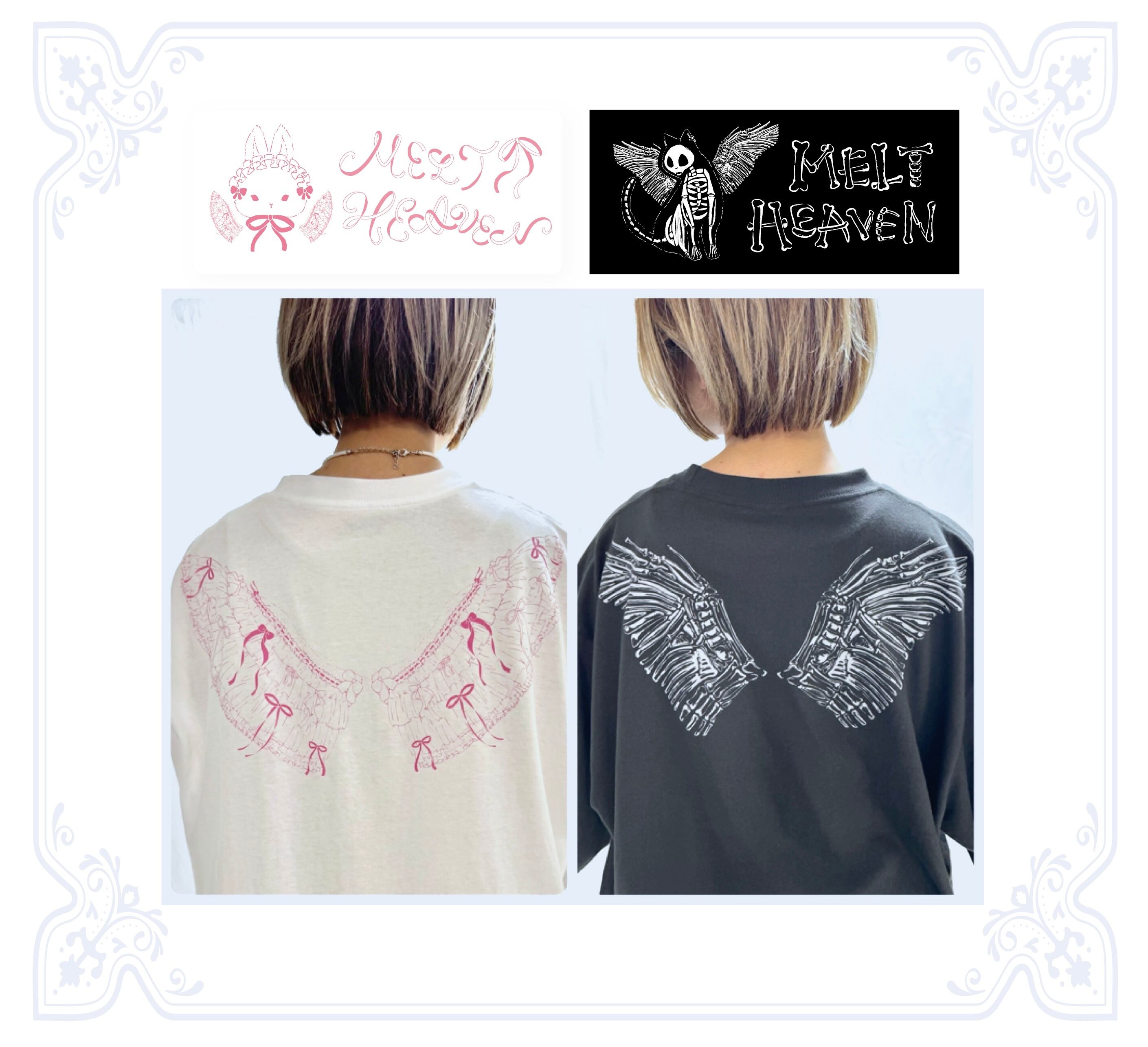 両袖にはMELT HEAVENのロゴ、胸元にはリボンでおめかししたウサギをプリント。
