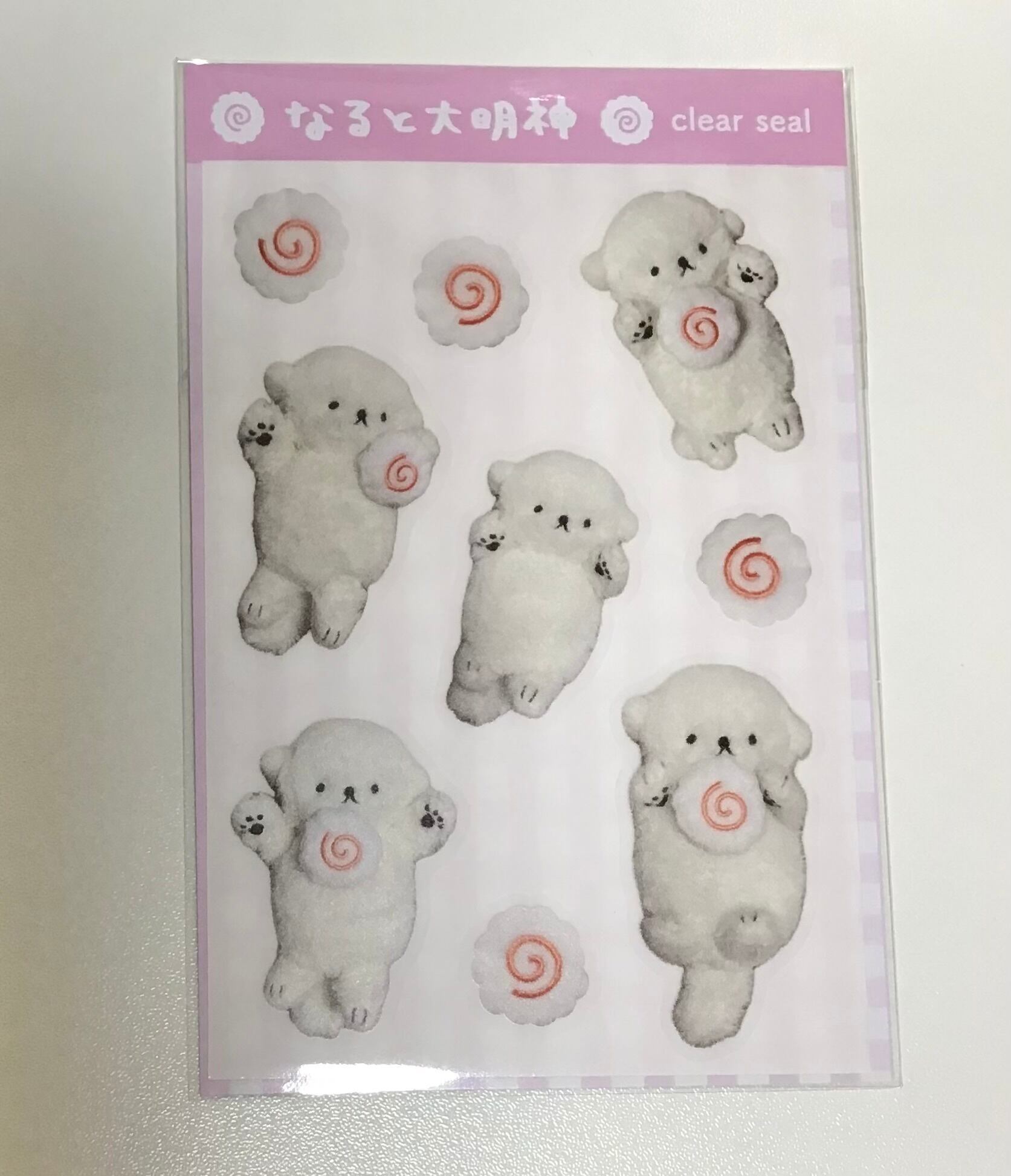 ラッコみたいなふわふわもちもちの生き物、なると大明神のクリアシール!